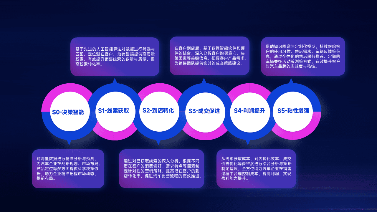 通过拓宽潜在客户来源、、、优化线索分配并提高到店转化率,,,以增强销售效率。。同时,,,利用线索数据不断优化分析模型,,,有效提升转化率,,,扩大营销影响力。。